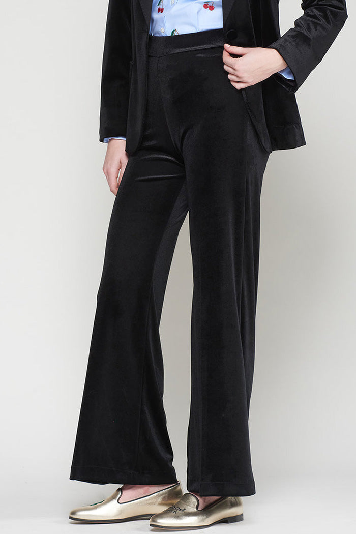 Black Velvet Hidden Elastic Waist Wide Leg Pants