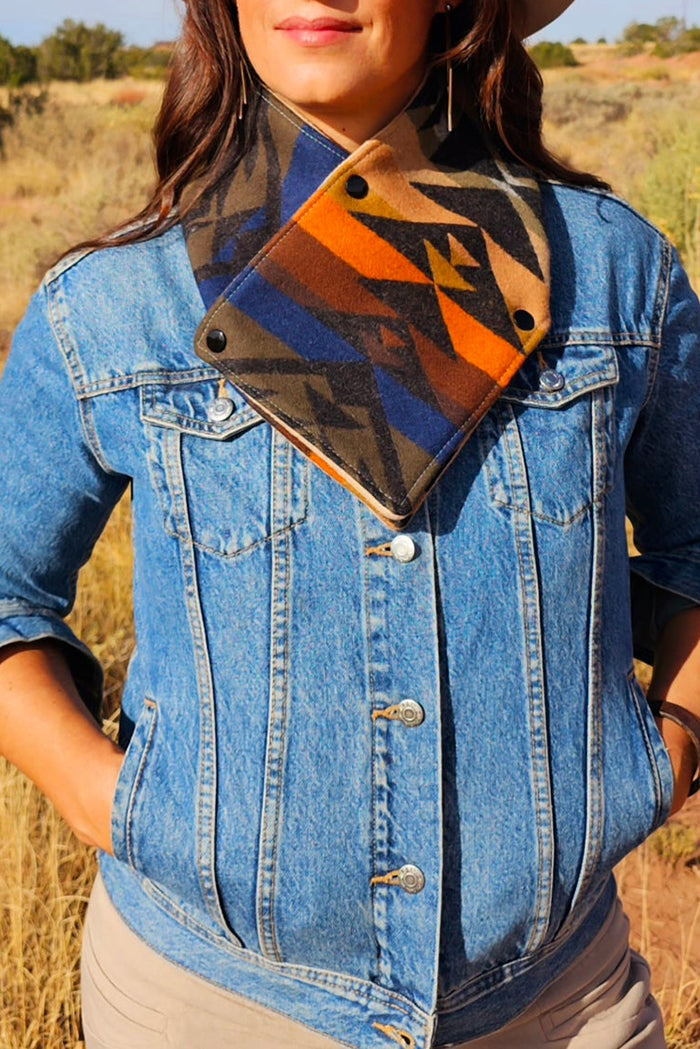 We're glad you've clicked on our new Casual Cowboylife Wool Scarf as we're really into its casual vibes!two hidden button snaps hold the Cowboy cowl closed in Front with an asymmetrical neckline ,Whether you're hiking or riding on your favorite trail, running errands, attending sporting events or just trying to beat the winter’s chill, this wool cowl will keep you super warm and looking stylish in the outdoors this cozy season. It can be dressed up as the perfect statement piece over your favorite sweater or denim jacket or worn tucked into a winter coat to protect you from the elements.