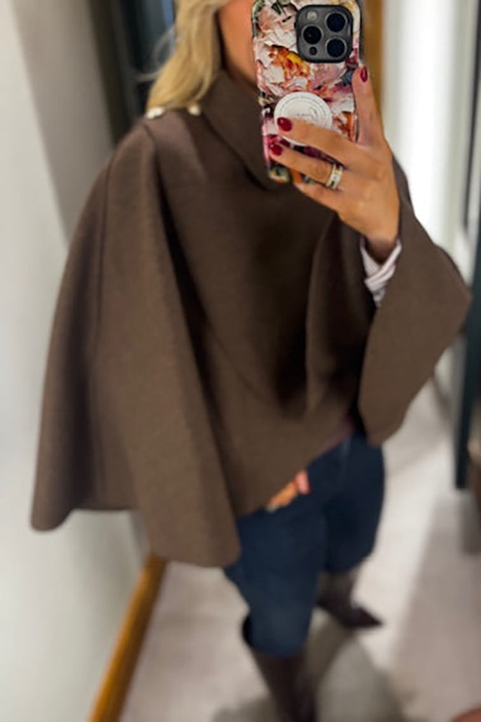 We're glad you've clicked on our new Elegant Button-Accent Cape as we're really into its casual vibes! Designed in a timeless silhouette that drapes beautifully over any outfit. gold button detailing that adds a touch of sophistication and shine. perfect for day-to-night styling or a polished finishing touch to your cold-weather look.