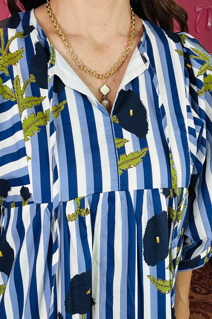 Striped Puff Sleeve Midi Dress