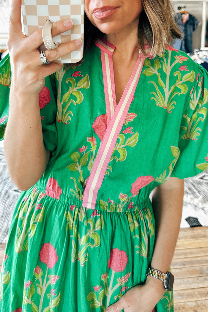 V-Neck Puff-Sleeve Floral Maxi Dress
